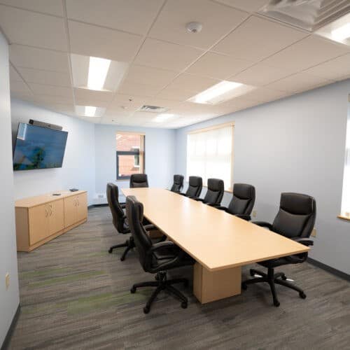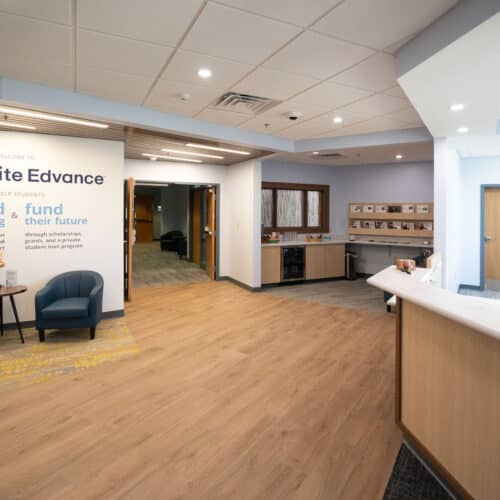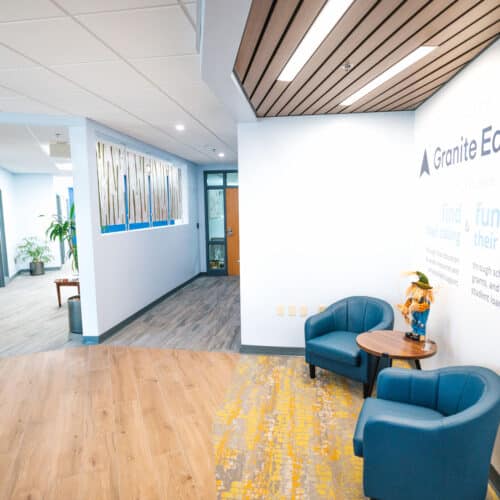TTG’s approach also focused on improving circulation within the office by adding an access door to the back of the suite and incorporating glazing for interior doors and vision panels to create a brighter, more open atmosphere. The updated interior finishes were carefully selected to reflect Granite Edvance’s new branding, resulting in a cohesive, modern environment that resonates with the company’s refreshed identity. This renovation not only meets the practical needs of the organization but also creates an inviting and professional space for both employees and visitors.