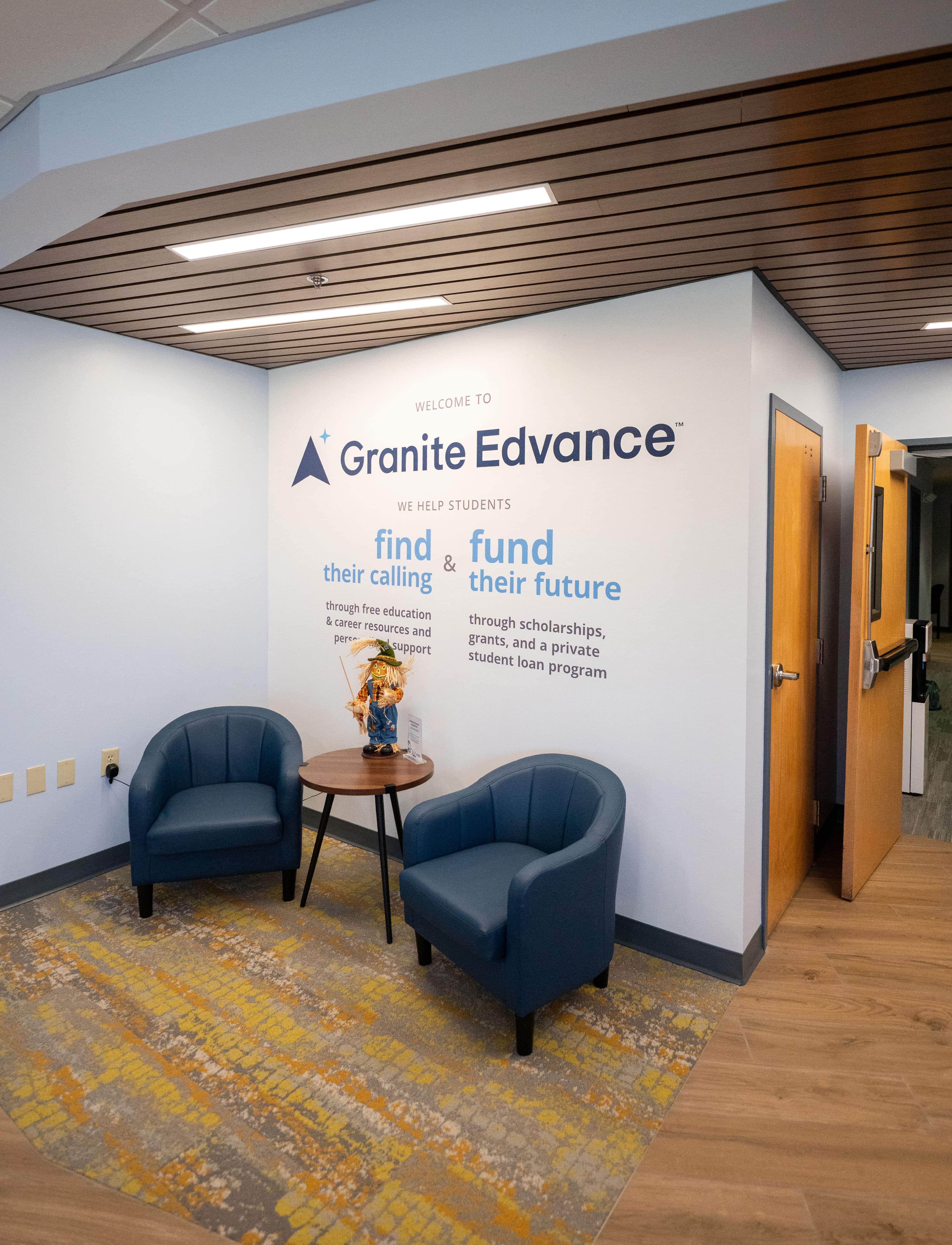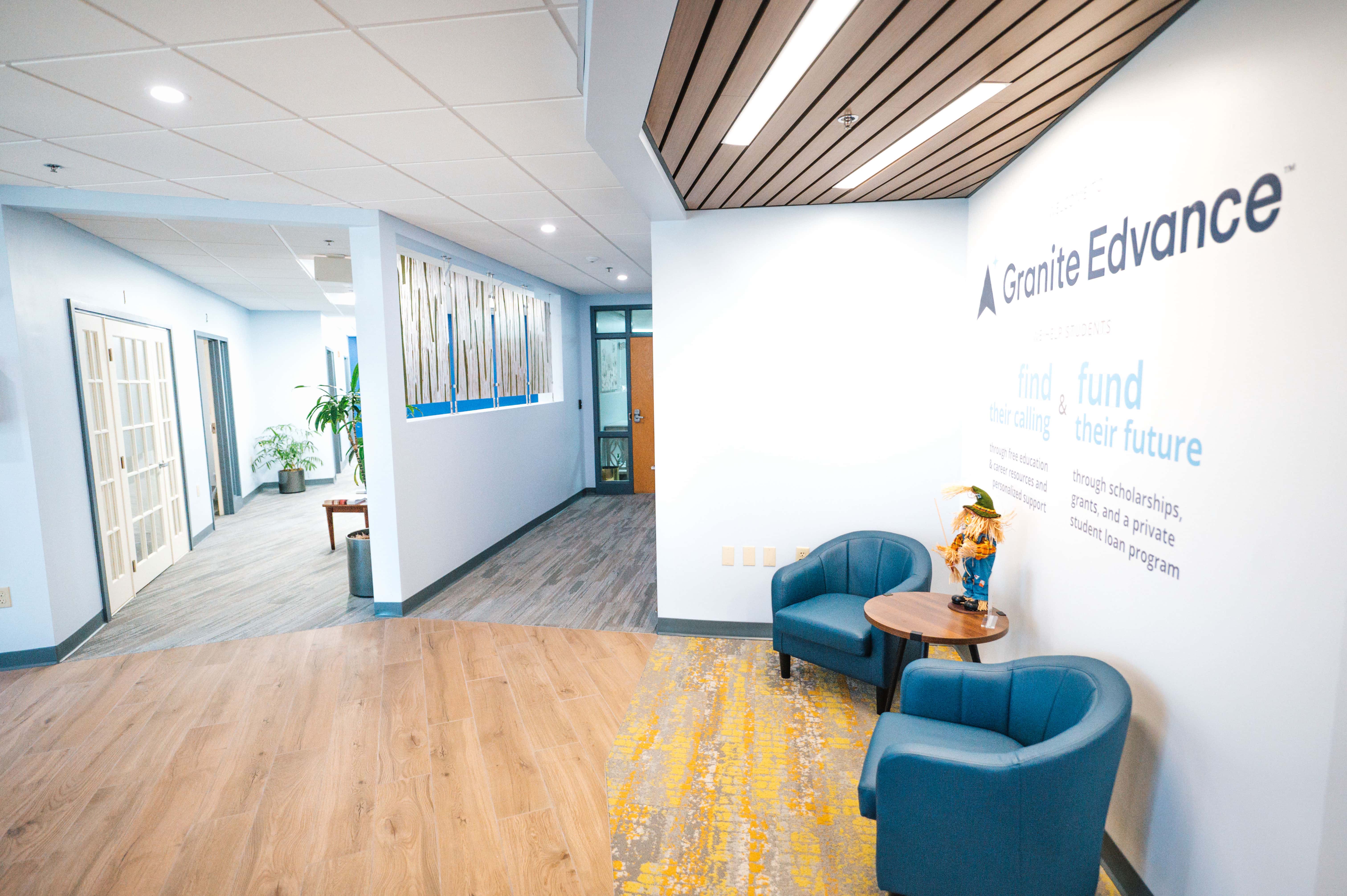 Granite Edvance, following its recent rebranding, sought to renovate its 7,800 square foot first-floor office to better align with its updated identity and operational needs. The Turner Group was awarded the project to lead the architectural and interior design efforts. The existing layout and finishes no longer supported the company’s vision, prompting a thorough reconfiguration of the space. Working closely with Granite Edvance’s executive team, TTG reimagined the office layout, introducing a welcoming reception area, a lobby with a branding wall, and a new information and refreshment nook. The design also includes five new conference rooms, a mother’s room, and a separate waiting area to enhance both functionality and privacy.